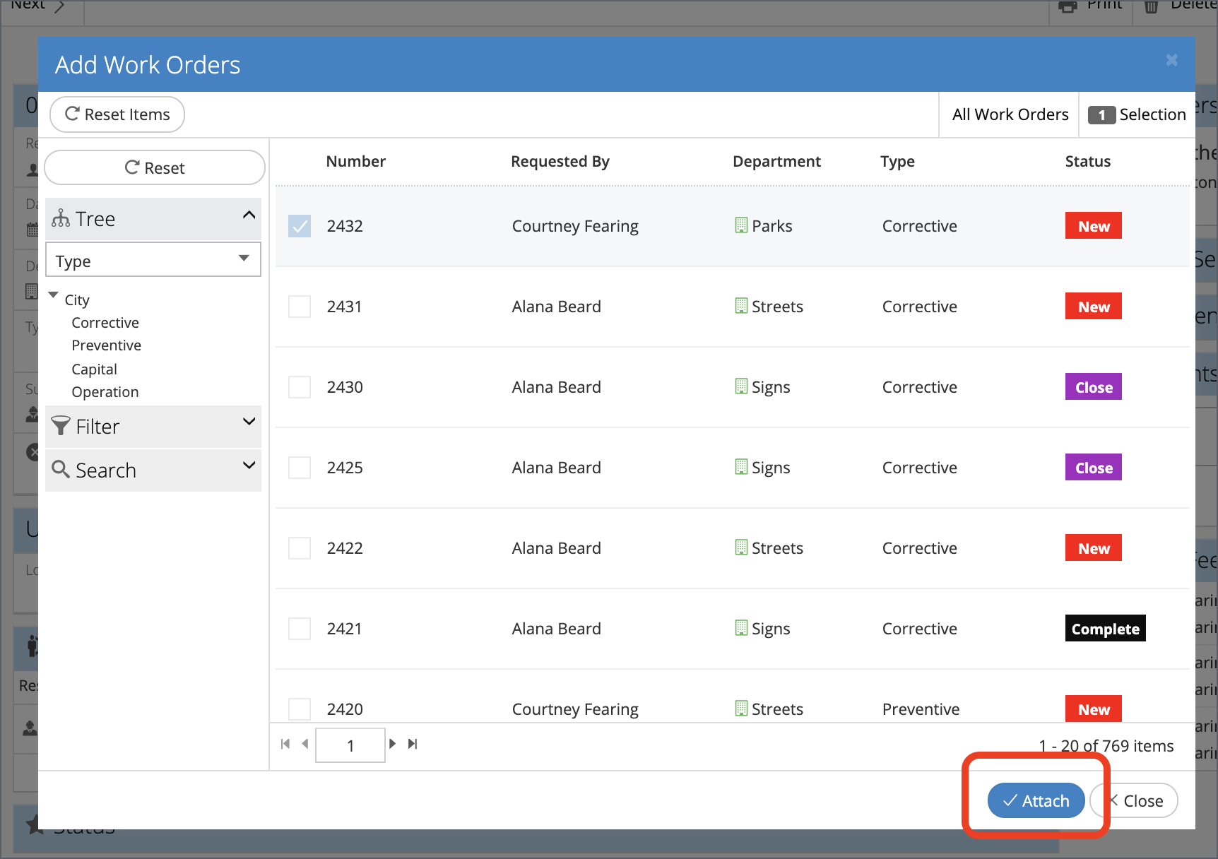 Service Request (SR) records in NEXGEN can be linked to Work Order (WO) records. When a Service Request needs additional work to be performed relating to an asset, users have the ability to create a WO that becomes linked to the original SR or link an existing WO to the SR. Both workflows are shown below.