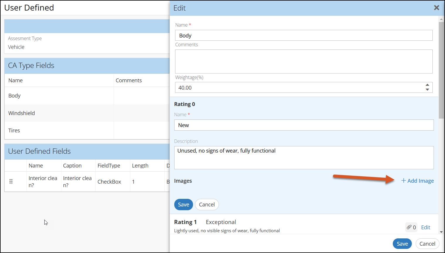 - If the +Add Image button is not visible, click Save to save the rating information and the +Add Image button should appear after clicking Edit again.