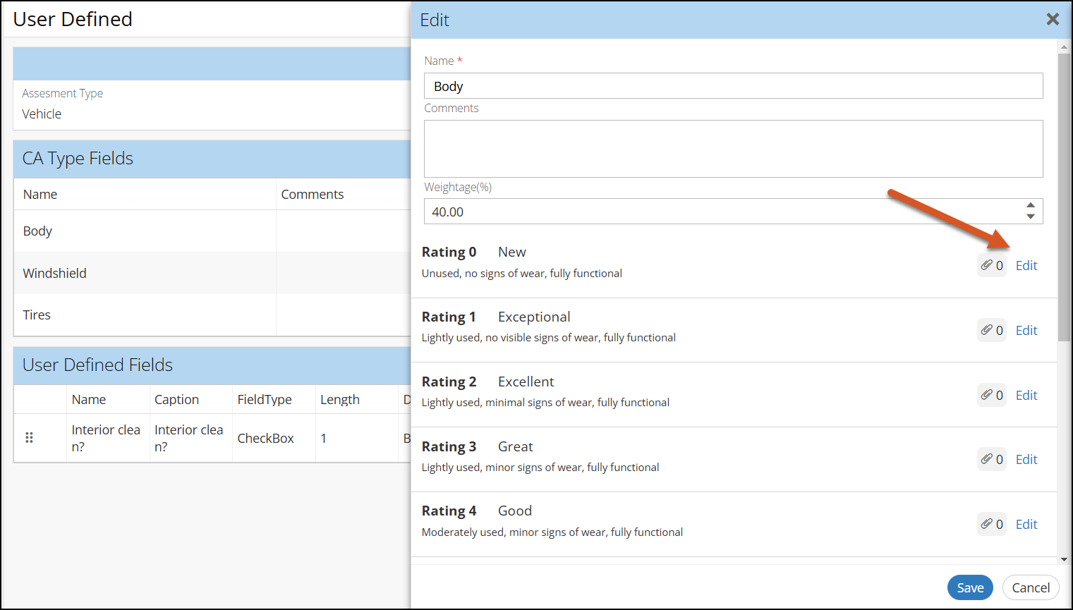 Adding a description for a rating is useful for providing additional instructions or context for a condition assessment field. You can also edit the name of the rating to better suit your organization's workflow.