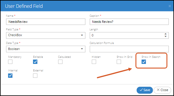 Enable a UDF as a Search Parameter - User Defined