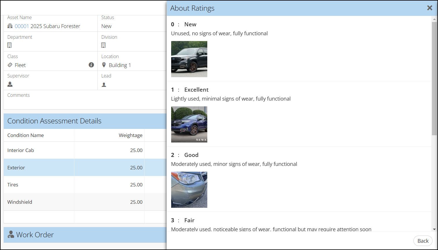 Condition assessments are forms you can create and fill out in