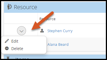 - Identify the resource you would like to edit or delete, then click the drop-down arrow next to it.