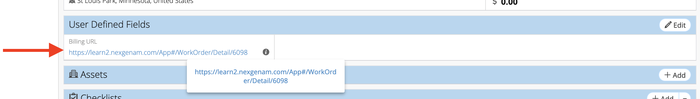 When assigning a work order or creating a PM, paste the desired URL address in the appropriate UDF.