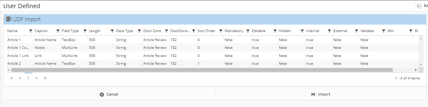 A UDF Import page should appear. Review your information to ensure your information is correct.
