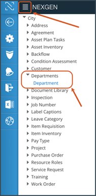 on the top left corner of your screen. Then, click the small arrow next to "Departments" to expand the Departments section. - Click on "Department" in the expanded section to view all the existing departments and divisions for your site.