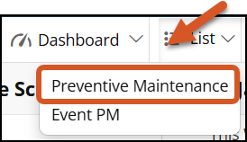 Ensure that you are in List View. Click List View > Preventive Maintenance in the top right.