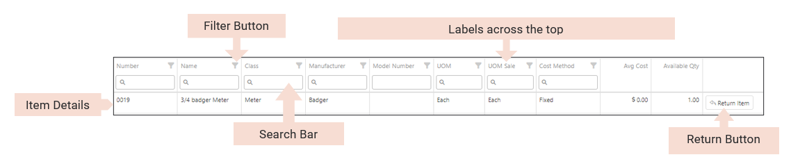 Your stock items should populate if any have been assigned to you. When you are ready to return your item you can click on the "Return Item" button to select the Warehouse and Location you are moving your item(s) to.
