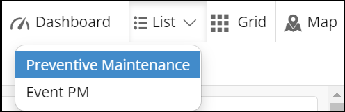 2. Click the arrow next to the List button on the upper right corner of the screen, then click "Preventive Maintenance."